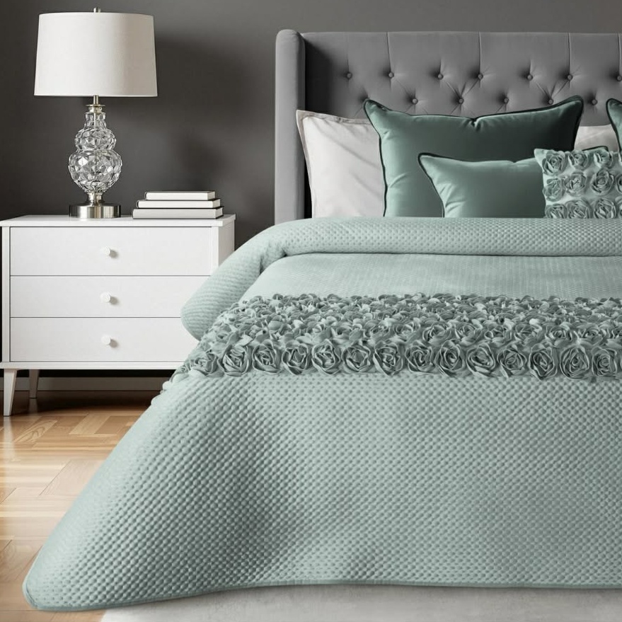 Narzuta z kolekcji Roses, zaprojektowana przez Evę Minge, to wyjątkowy element dekoracyjny, który otula wnętrze subtelnym luksusem. Uszyta z miękkiej, welwetowej tkaniny, zachwyca delikatnym połyskiem i przyjemną w dotyku strukturą. Jej największym atutem jest elegancki pas aplikacji 3D róż – wykonanych z tkaniny z niezwykłą dbałością o detal.