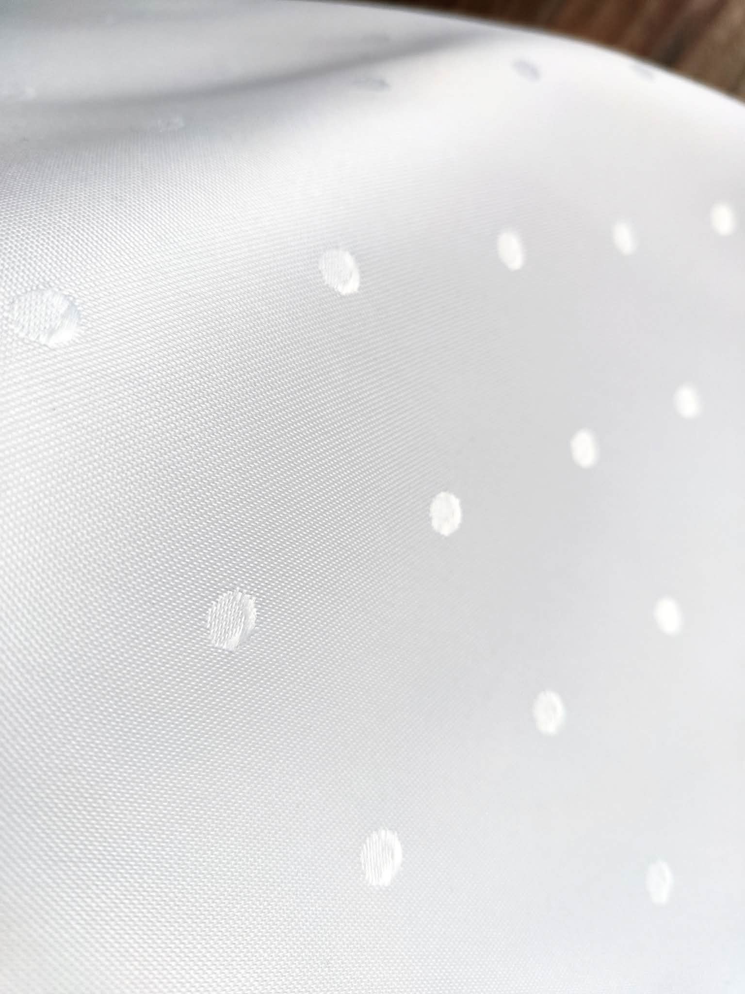 Obrus szyty na wymiar, z grubszej tkaniny plamoodpornej.