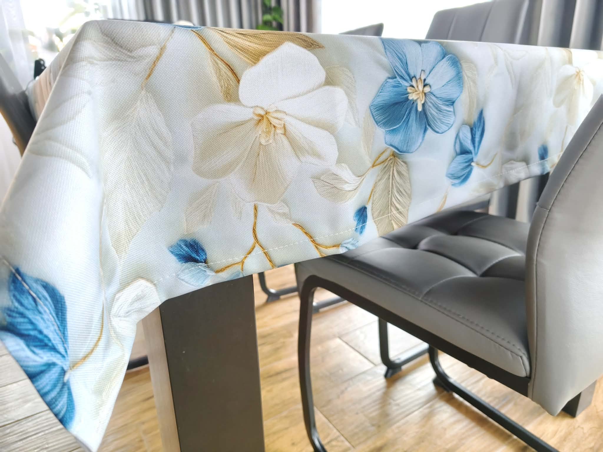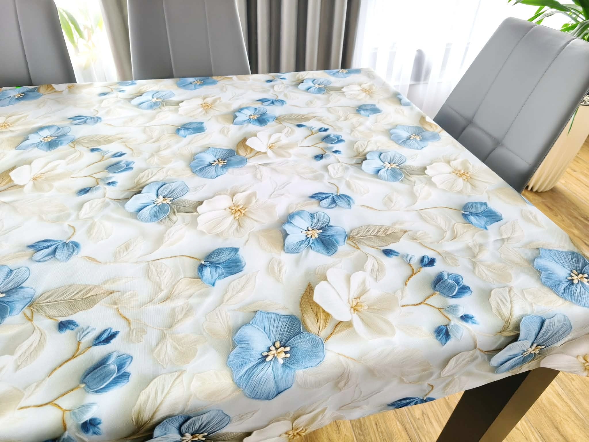 Obrus plamoodporny w błękitne kwiaty 3D 120/120 warianty