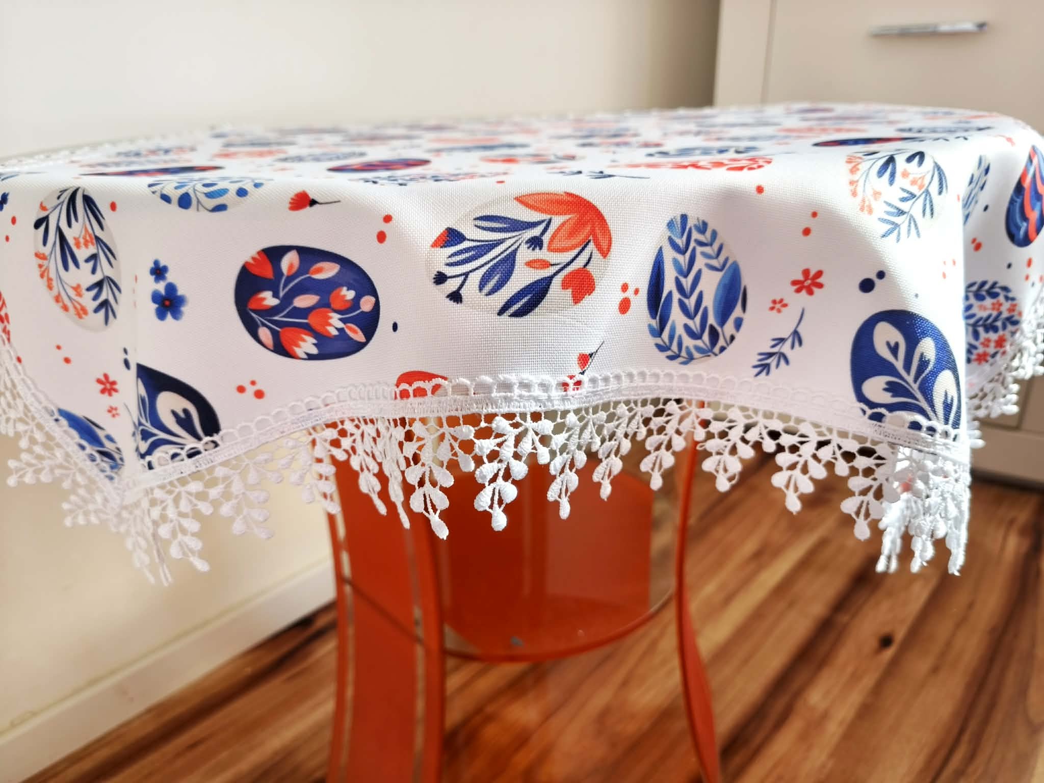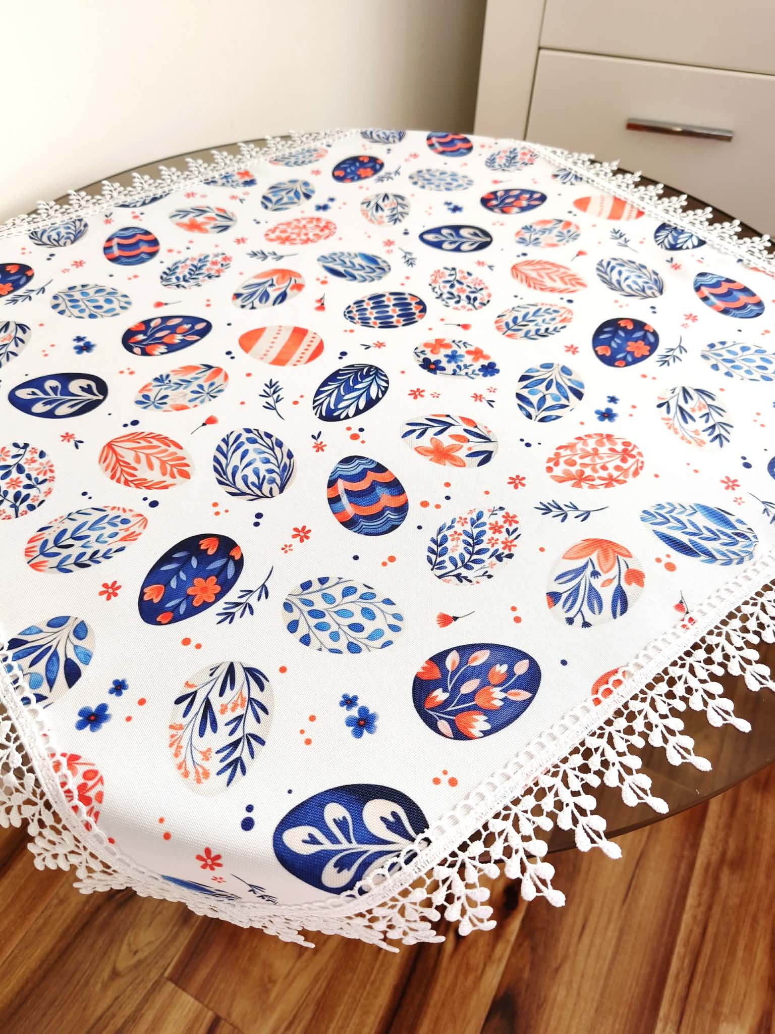 Serwetka z gipiurą wymiary 60/60cm. Idealna do koszyczka lub na stół. Szyta w naszej pracowni z dużą starannością.